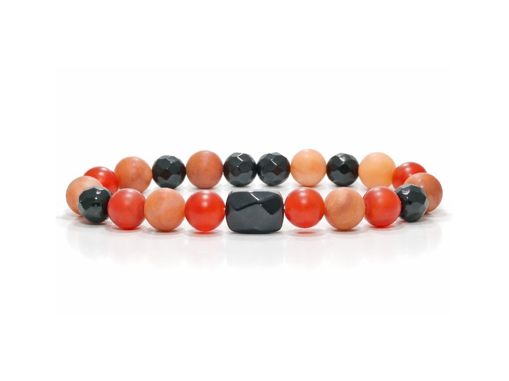 Karneol hatása: anyagcsere javító, idegrendszer erősítő, női szaporítószervekre, termékenységre jó hatással van, depresszió ellen, vérzéscsillapító, fejfájás ellen, vérellátás javító, ásványi anyagok felszívódását segítő, izületi gyulladásokra is jó hatással lehet