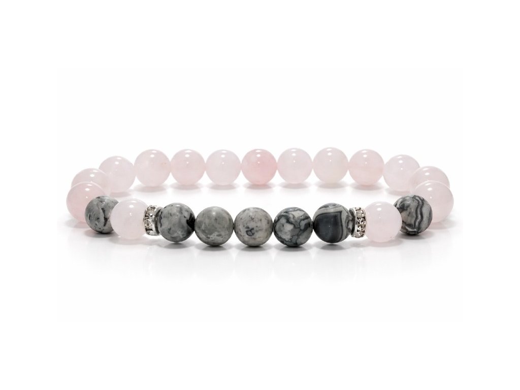 Jáspis, rózsakvarc ásvány karkötő