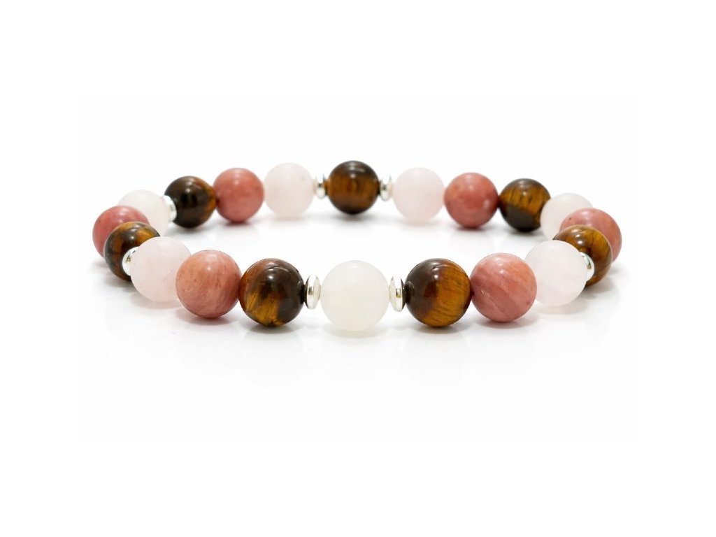 Rózsakvarc, tigrisszem, rodonit karkötő