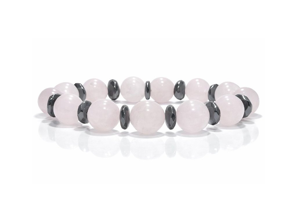 Szeretet és szerelem vonzó női ásvány karkötő 10mm-es rózsakvarccal és fazettált hematit köztesekkel